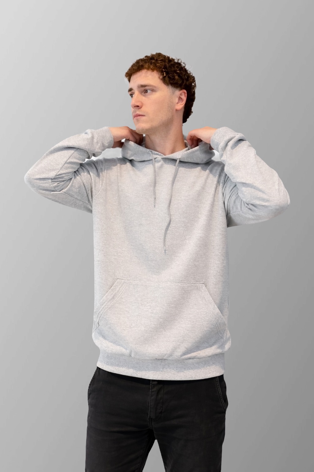 Buzo canguro confeccionado en frisa invisible de algodón peinado color GRIS MELANGE CLARO.