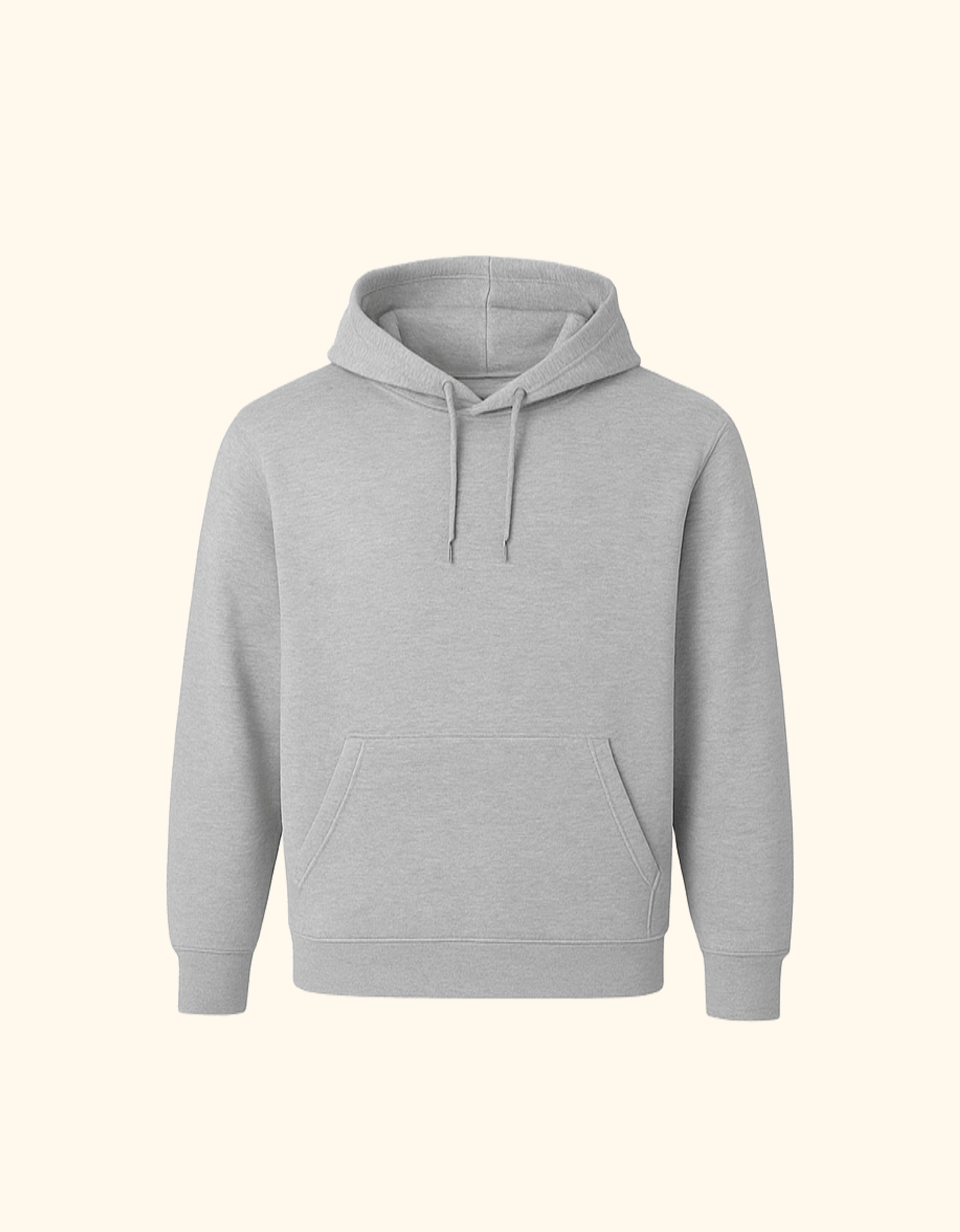 Buzo canguro confeccionado en frisa rústica color GRIS MELANGE CLARO.